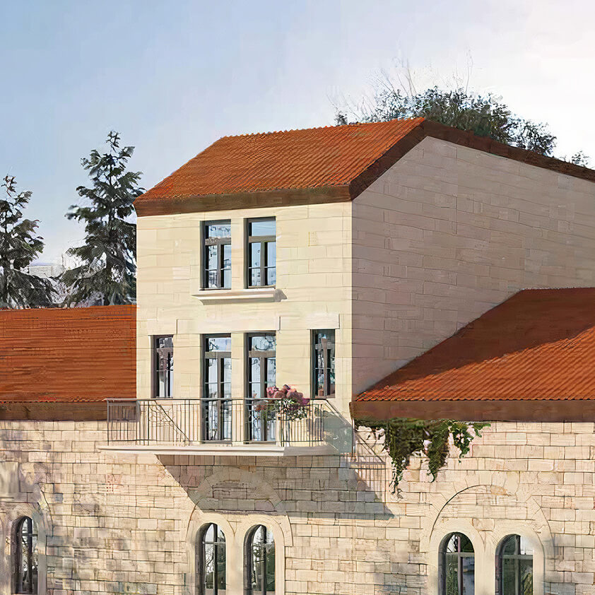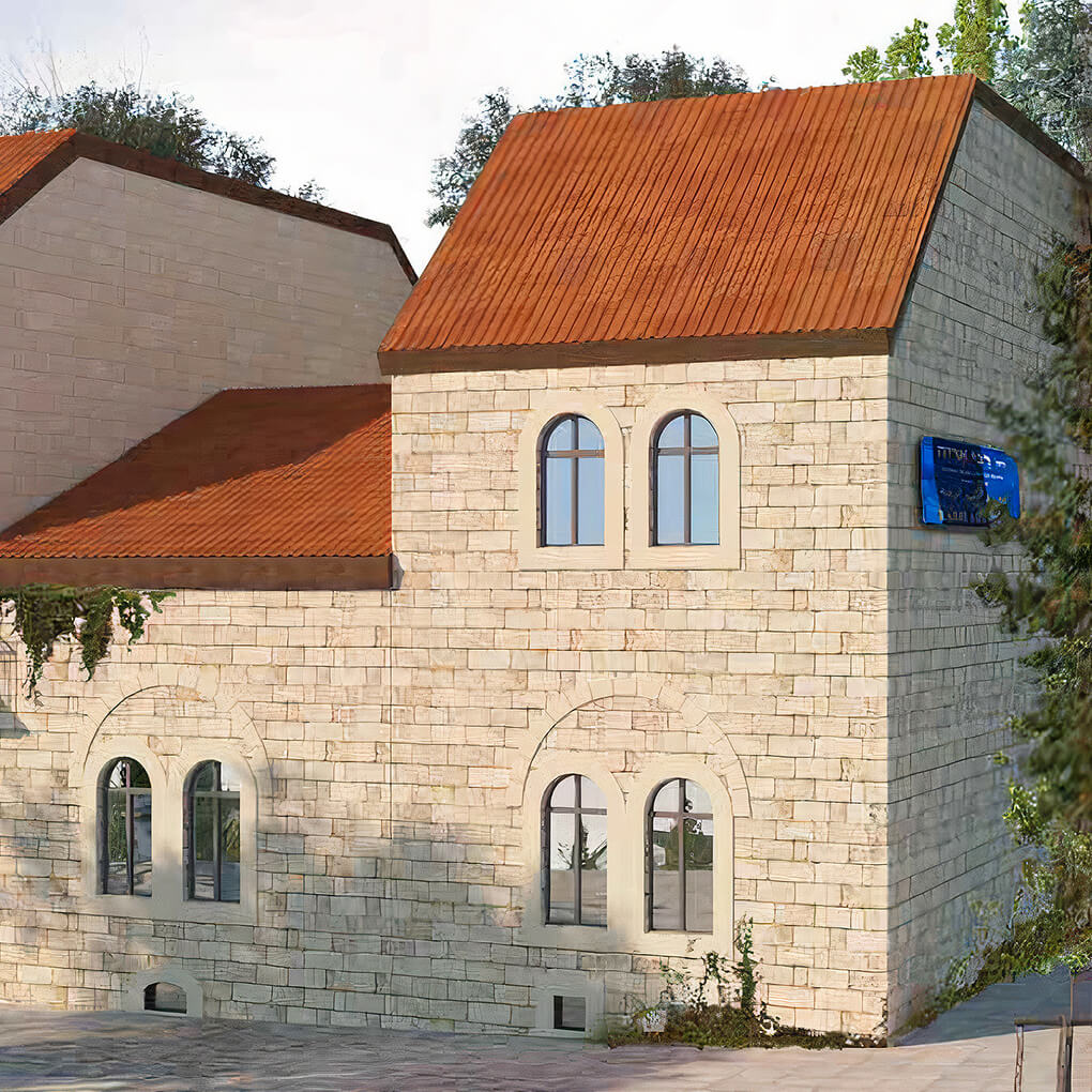 תכנון מבנה מגורים בעל 7 יח"ד בשני אגפים עם חצר פנימית בחלקה קטנה של 80 מ"ר.