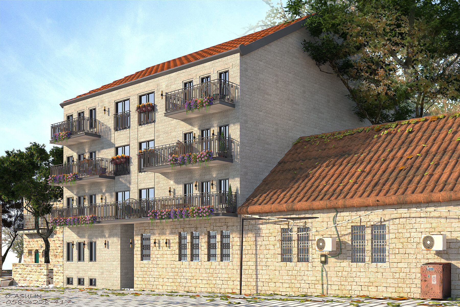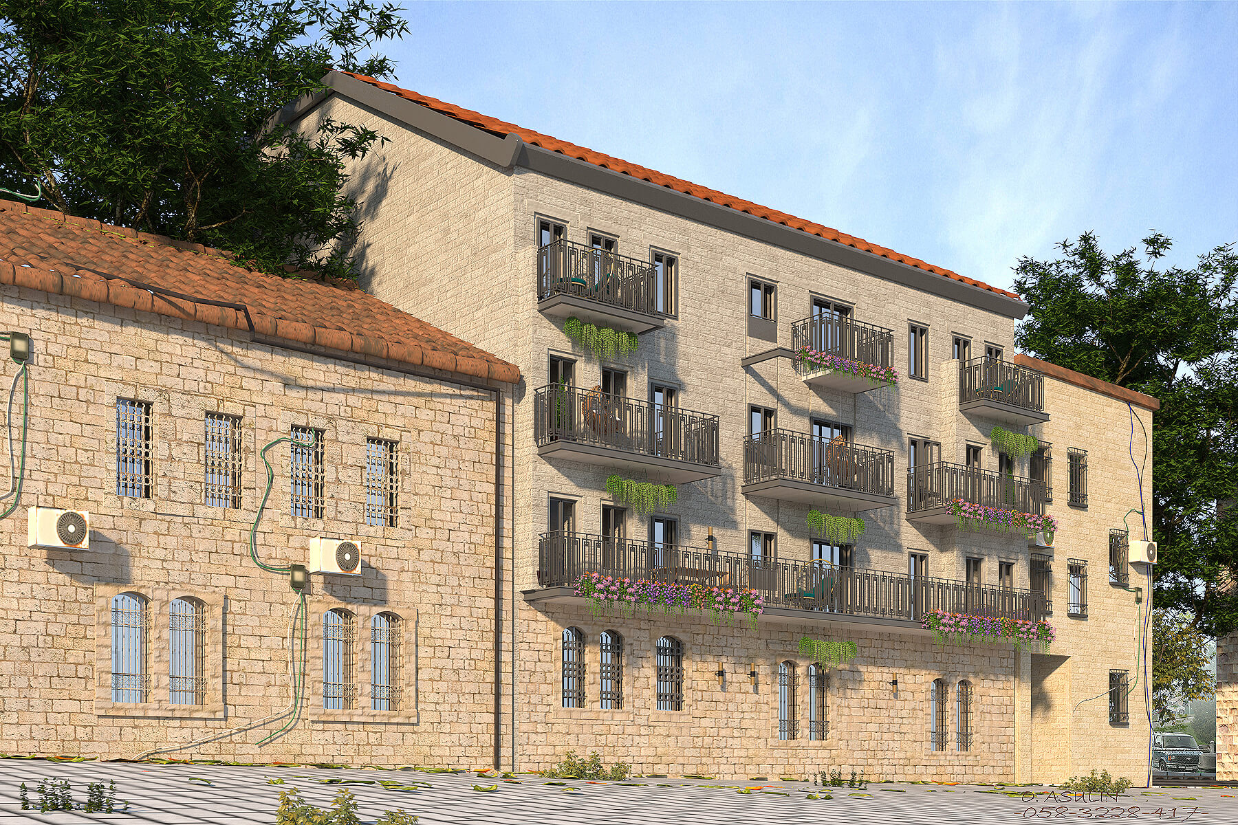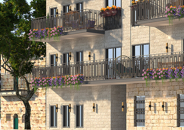23 יח"ד חדשות בחלקה קטנה מאוד ותכנון חצר פנימית בסגנון ירושלמי ליצירת הווי שכונתי ושיפור כיווני אוויר לכלל הדירות.