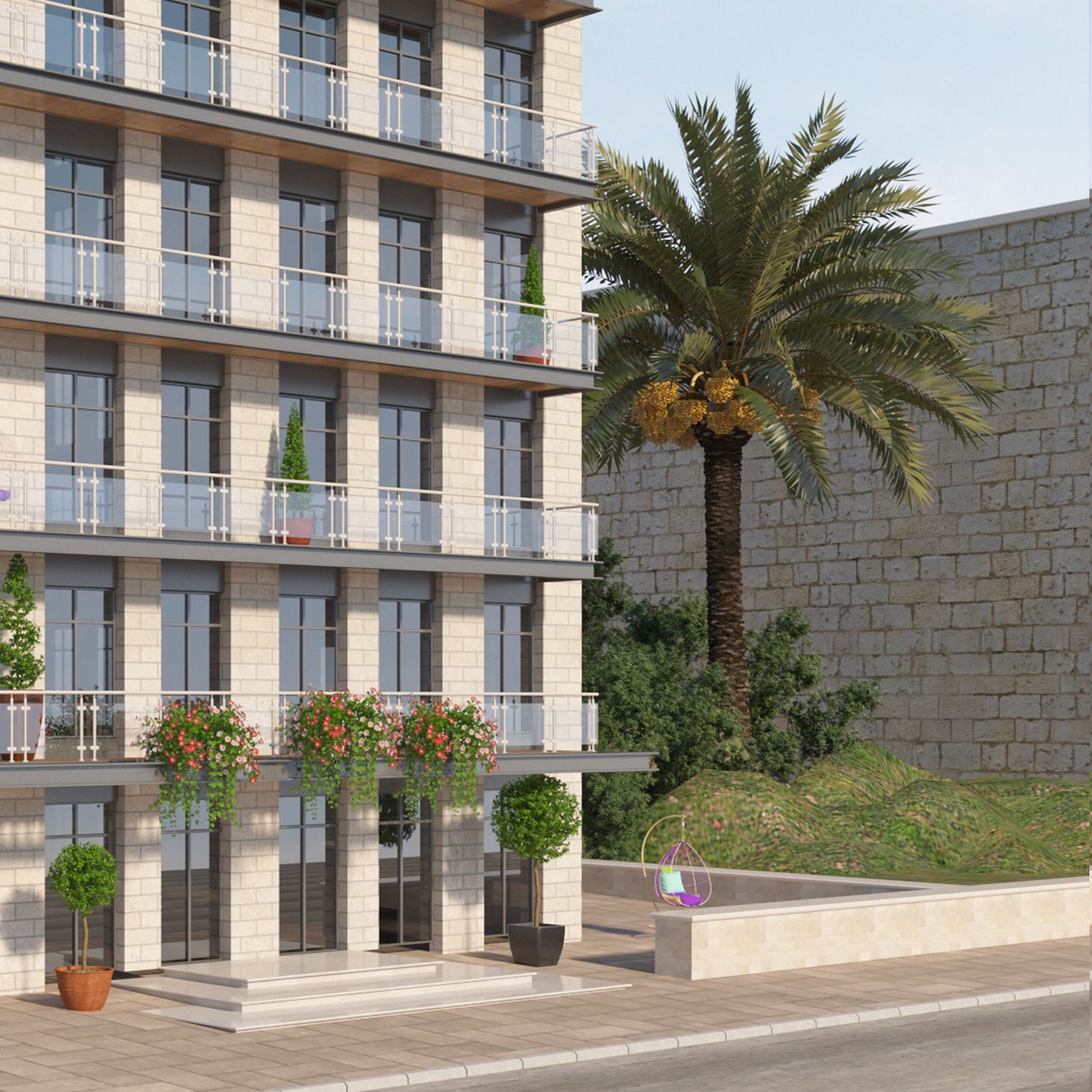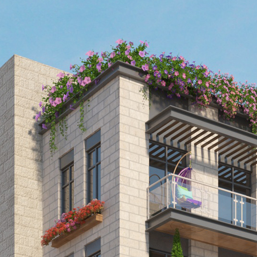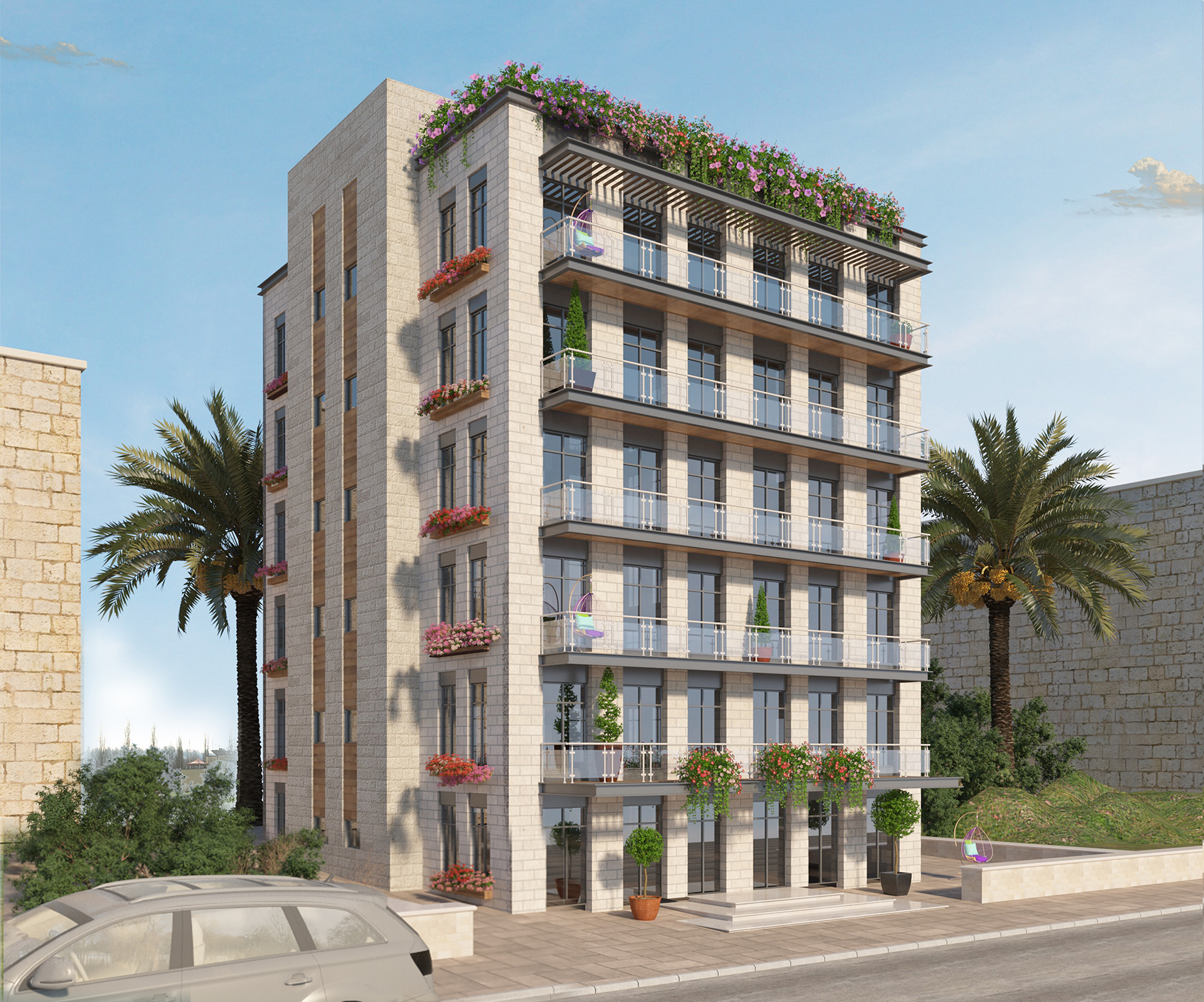 תכנון 23 יח"ד במגרש משופע, מקסום זכויות בניה וניצול תוואי השטח לתוספת קומה מעל המדיניות.