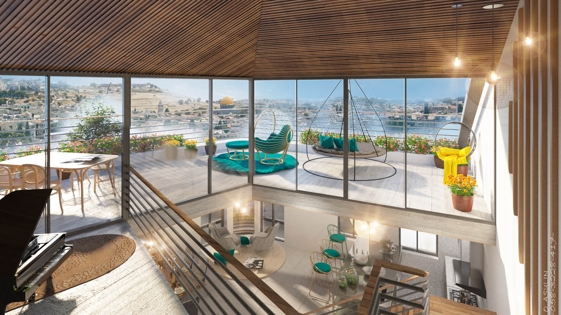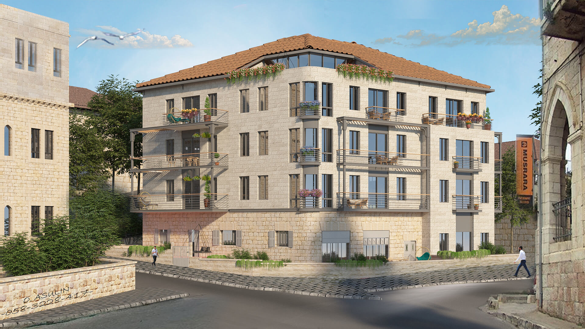 מרקם לשימור מחמיר, תכנון מוקפד בצורת מגרש ייחודית והפניית חלונות המבנה לנוף העיר העתיקה והר הבית.